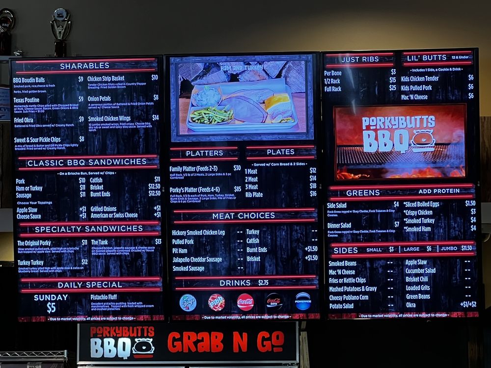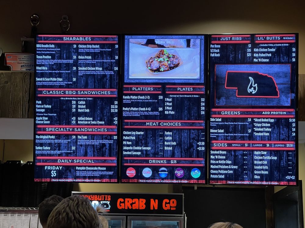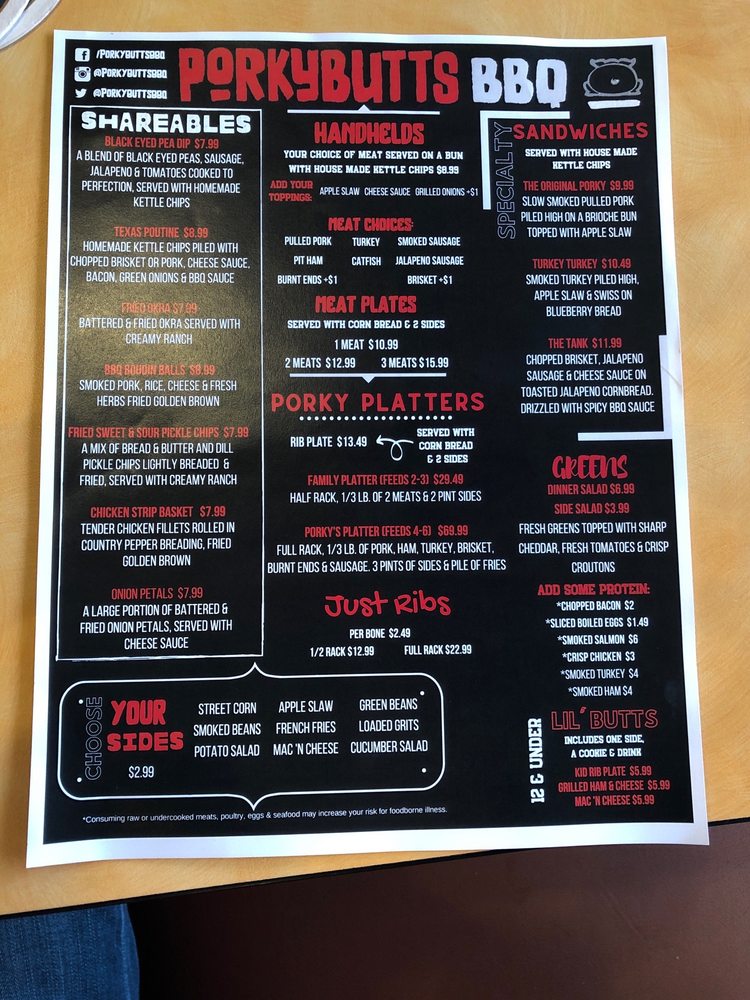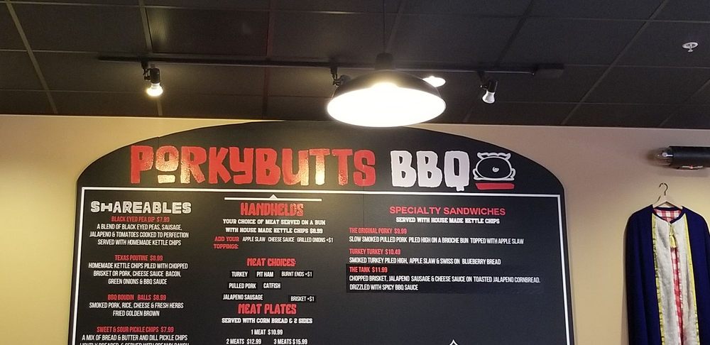 At Porky Butts BBQ, located in Omaha, NE, you can expect a mouthwatering experience filled with BBQ delights. Their menu boasts plates and platters with a choice of 1, 2, or 3 meats, perfect for a family feast. Shareables like BBQ Boudin Balls and Chicken Tenders with fries showcase their creative offerings. Customers rave about the flavorful burnt ends, smoked beans, and brisket chili. The generous portions and delicious sides like mac and cheese and coleslaw complement the meats perfectly. The staff's friendly service, along with their range of sauces, including a fiery option, add to the overall experience. With trophies lining the walls, Porky Butts BBQ is a must-visit spot for authentic and mouthwatering BBQ that will keep you coming back for more.